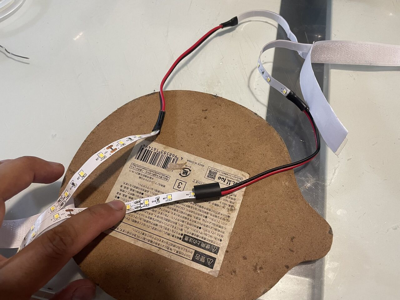 ベルクロテープの端にテープライトに貼り付けます