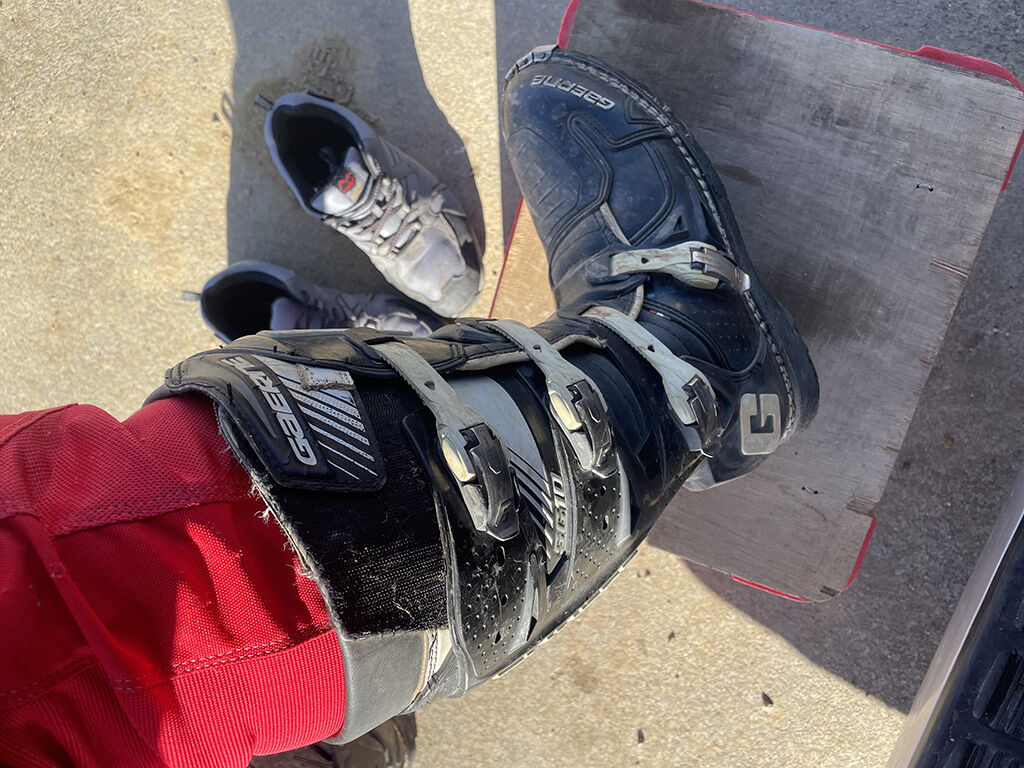 どうしてこういう感じになってしまうのか、それはもう、低体重心で乗ってたからですが、結局ロックも掛からず、ハンドルも手で切ってるし、体重心もずれてるから、コーナーでフロントがヨレて転けてしまう。クロトレは特にフロント周りが軽いので、あっさりヨレてしまうのですが、要するにロックもかかってないし、ベクトル転換による抑えも効いてないから、というのが原因だったわけです。