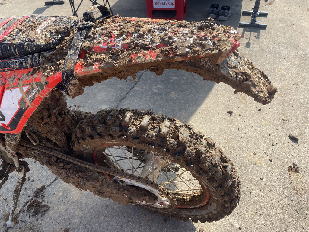 結果、マディを含め、エンジン稼働時間が102分。左側ばかり転倒4回。流石にこれ以上やってもパフォーマンス出ないと考えて、初日の練習を終えました。