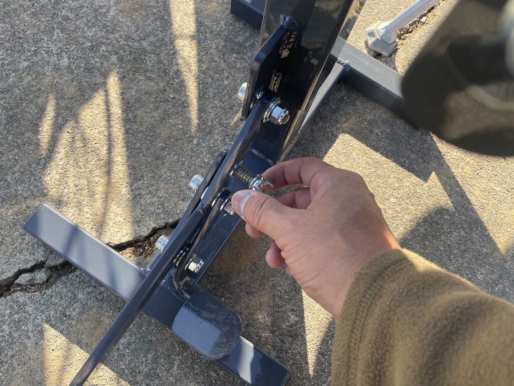 まず、リフトアップ中にキックアームを蹴飛ばしたりして、うっかり上がってしまわない様にロックの蝶ネジが付いています。前に、エトスのスタンドで、勝手に跳ね上がって手を怪我した人がいましたので、こういう配慮は有難いです。