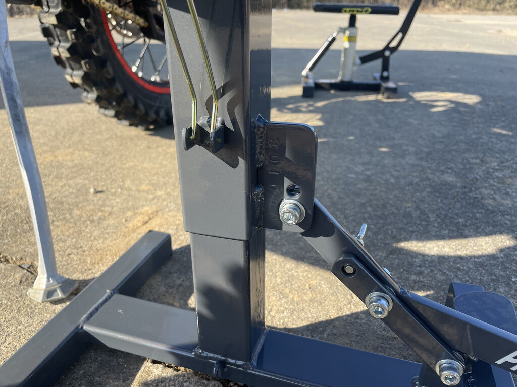 去年、バイクリフトを買い換えたばかりですが、ぶっちゃけた話し、全然よくありませんでした。何が良くないといっても、リフトアップしたバイクに跨ろうとすると、グラグラして倒れそうだし、フォームチェックの際もグラグラで、チェックどころでなかったからです。