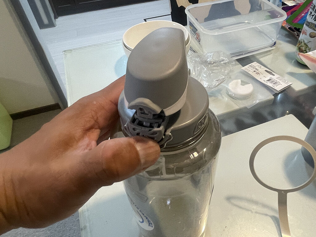 モノの出し入れに利便性のある広口ボトルですが、飲む段となると、その広口が仇になって、うっかりすると中身が全部顔にかかる、なんて事があります。それが嫌さに、これまでオアシスを使ってきた、という事情もあります。