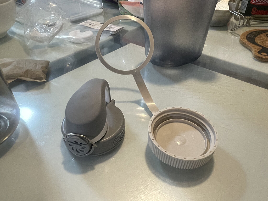 これを防ぐためのアイテムとして、イージージッパーというのがあります。これはボトルの広口にはめ込んで使うモノなのですが、うっかりすると中に落ち込んでしまうとか。まぁ、これでも良かったのですが、できればワンボタンでキャップが開くのがいいな、という事で、別にOTFキャップというのを取り寄せました。
