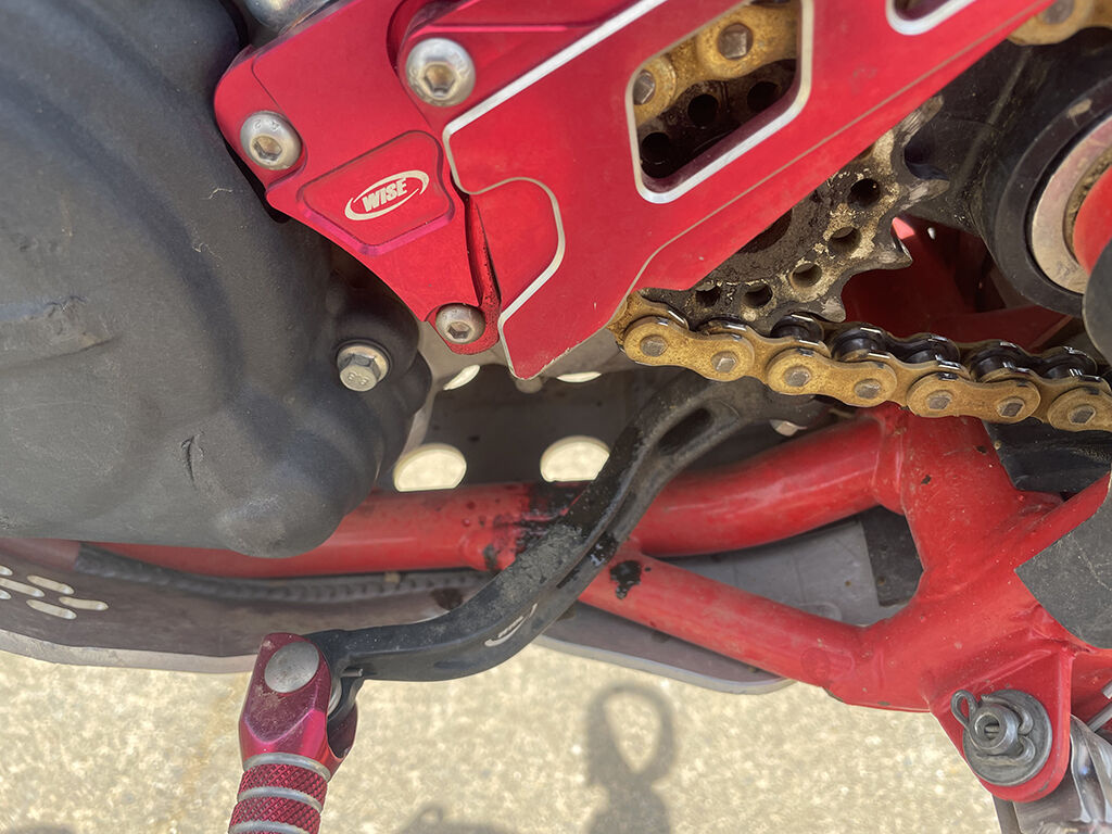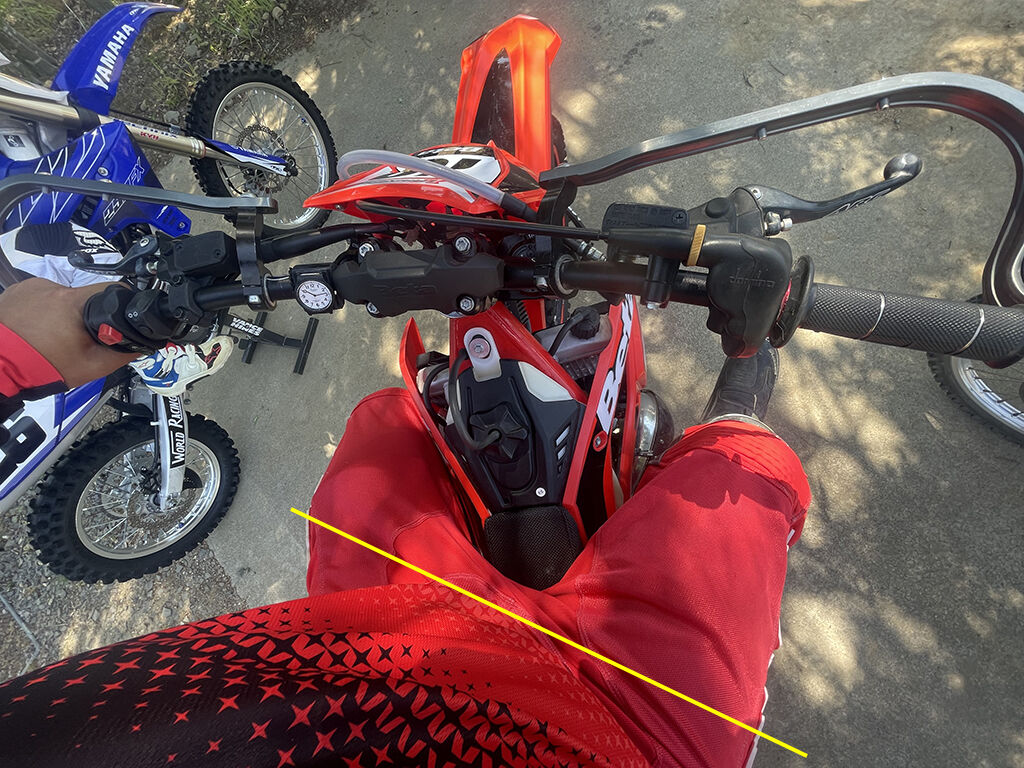 結論としては、クロストレーナーはモトクロッサーではなく、エンデュランサー(しかもトラ車寄り)なんだから、エンデュランサーなりの乗り方をしなきゃならない、という事でした。つまり、ジャンプはガッツリ飛ばず、ふわっと越える様に飛んで、着地も肘と膝でショックを吸収する様に着地して、サスを底突きさせない様に飛ばねばならない、という事になりました。