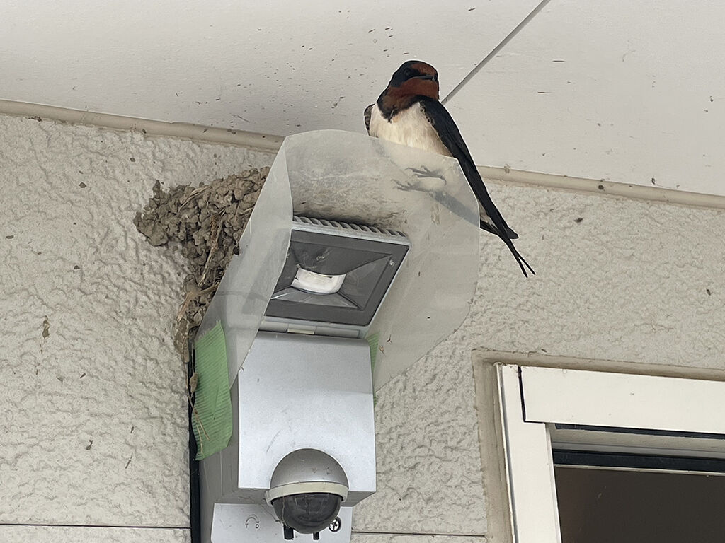 なんとトイレの入り口で、ツバメが巣を作ってました