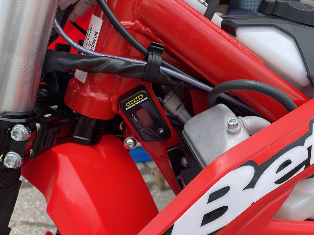 さて、ここで3時間6時間という時間を挙げたのですが、これは適当に時計見て計っているのではなく、アワーメーターをバイクに取り付けて計ったもので、練習やレースの度にアワーメーターを見て、稼働時間の記録を取っています。アワーメーターは、オイル交換だけでなく、フロントフォークのオイル交換とか、エンジンのオーバーホールの時期を測るためにも、納車時に取り付けます。