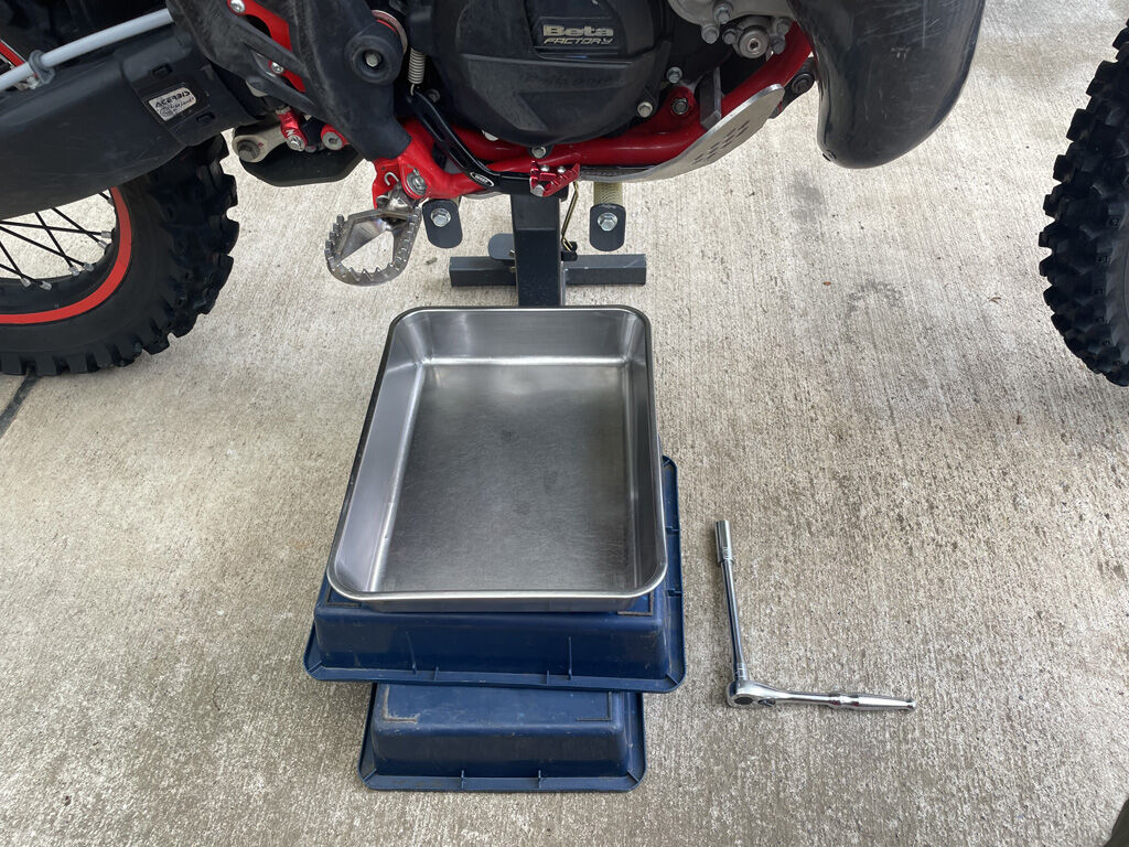 サイドスタンドのあるバイクなら要らない様なものですが、その他整備をしたり、フォームチェックをする上で、必須アイテムですので載せておきました。 - オイルパン