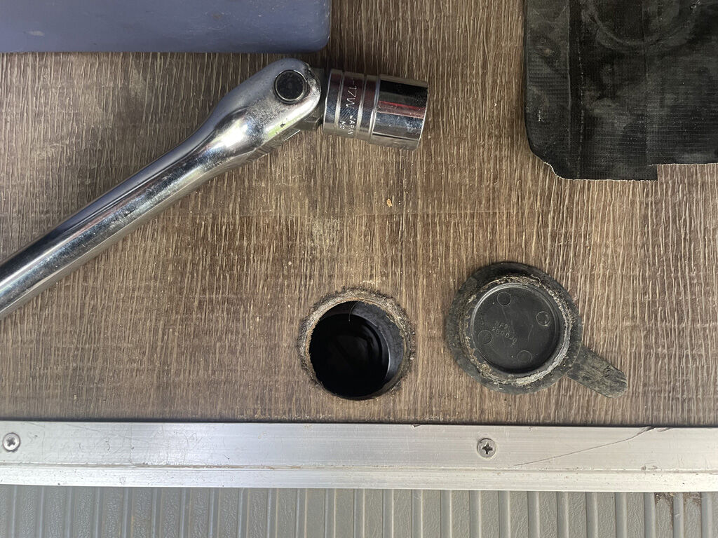 2020年から使っている200系ハイエース“プシュパカ・ラタ号”。今も機嫌よく使っているのですが、実は4年前の艤装時から気になっていたのが、スペアタイヤを固定しているボルトにアクセスする穴。これが結構ずれていて、いざスペアタイヤを外す段になったら、工具が入らない可能性が大でした。
