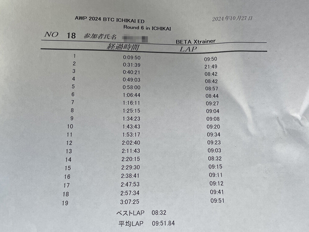 ただし、そのままダラダラ走り続けるだけではなく、ここ一番の時は元のペースに戻したりします。今回も、Bクラスで自分より少し早い人がいたのですが、むざむざラップさせるのはアレなので、2周ほどブロックして走りました。まぁ、レースですので、遅い人を抜くテクニックも必要なのですが、そうした練習は普段あまり出来ないので、アグレッサー役をやってました。もっとも、2周で疲れて止めた訳ですが。