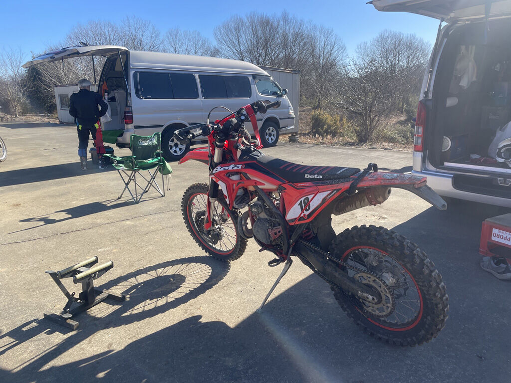 今回のBTC市貝、週の間に降った雨の影響が残っていて、チャンピオンコースの半分くらいが、表面は乾いてる様に見えて下はズルズルといったコースコンディションで、試しに入ったら坂が上れなくて難儀して逆走して帰ってきた(走ってたのは自分だけ)、というのがありましたので、もっぱら教習用コースで基礎練習を繰り返し、最後はチャンピオンコースのショートコースで仕上げをしました。