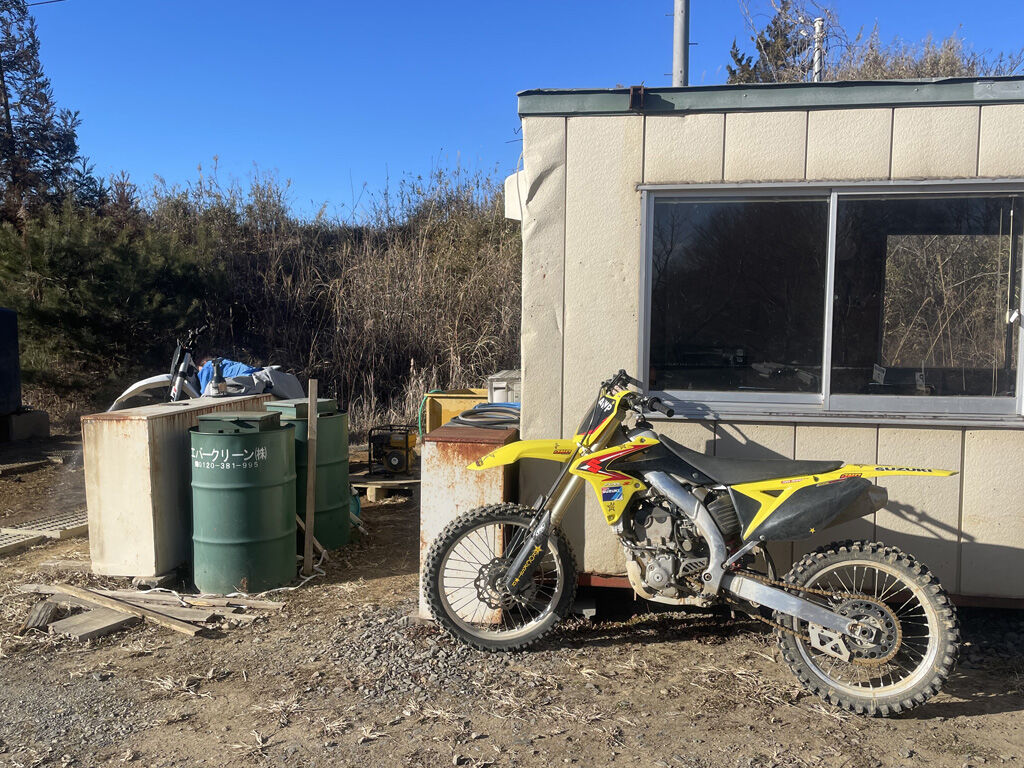 後日談ですが、クロトレよりもシート高が45ミリ高いRM-Zに乗り降りするのと、キック始動のせいなのか、左の股関節がおかしな入り方になって、しばらくの間、変な感じがしたり、痛くなったりで、ちょっと難儀しました。セルフ矯正で一週間ほどかけて治しましたが、ぶっちゃけ、バイク乗って加重かけてた方が治りが早かったかもしれません。