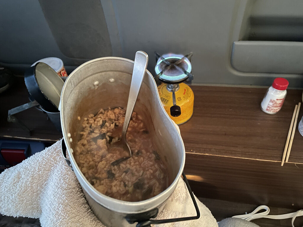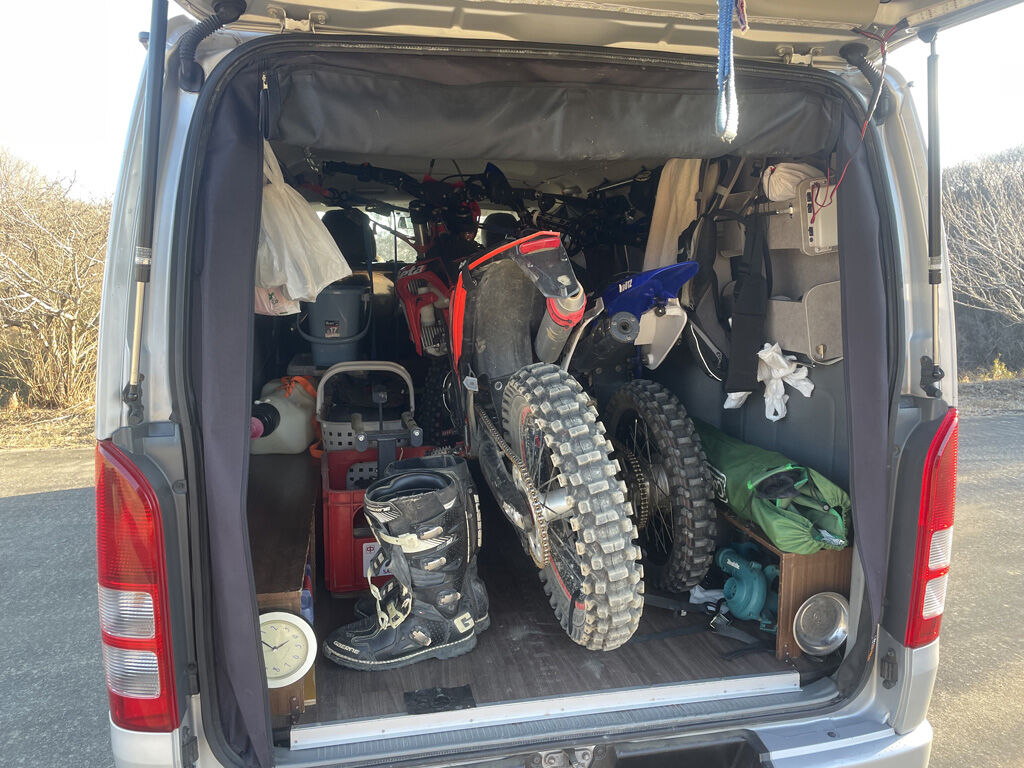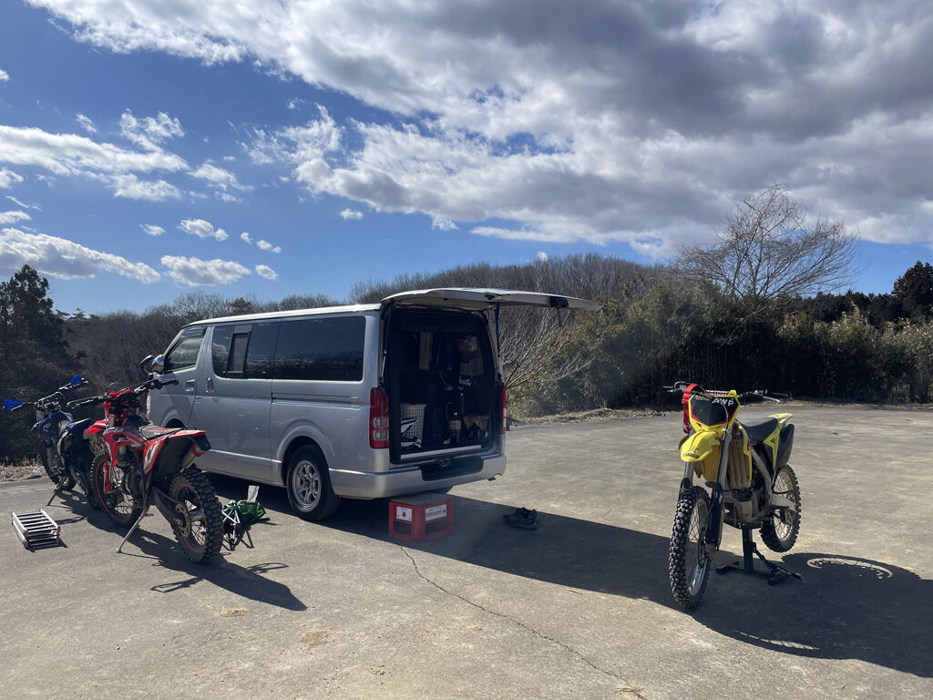 2月のベストテクコース市貝の車中泊は、一年で一番寒い季節なんじゃないかと思うのですが、ポータブル電源2台と電気毛布上下に2枚を使う事で、トランポのエンジンを掛けっぱなしにしなくても、温かく寝れる様になりました。また、朝は、まず先にエンジンを掛けて暖気し(そうでないとフロントガラスに結露して凍ったのが溶けないから)、昨日炊いた飯を粥にしたあと、ストーブを着けっぱなしにする事で暖を取り、体を動かす気になる様にしています。