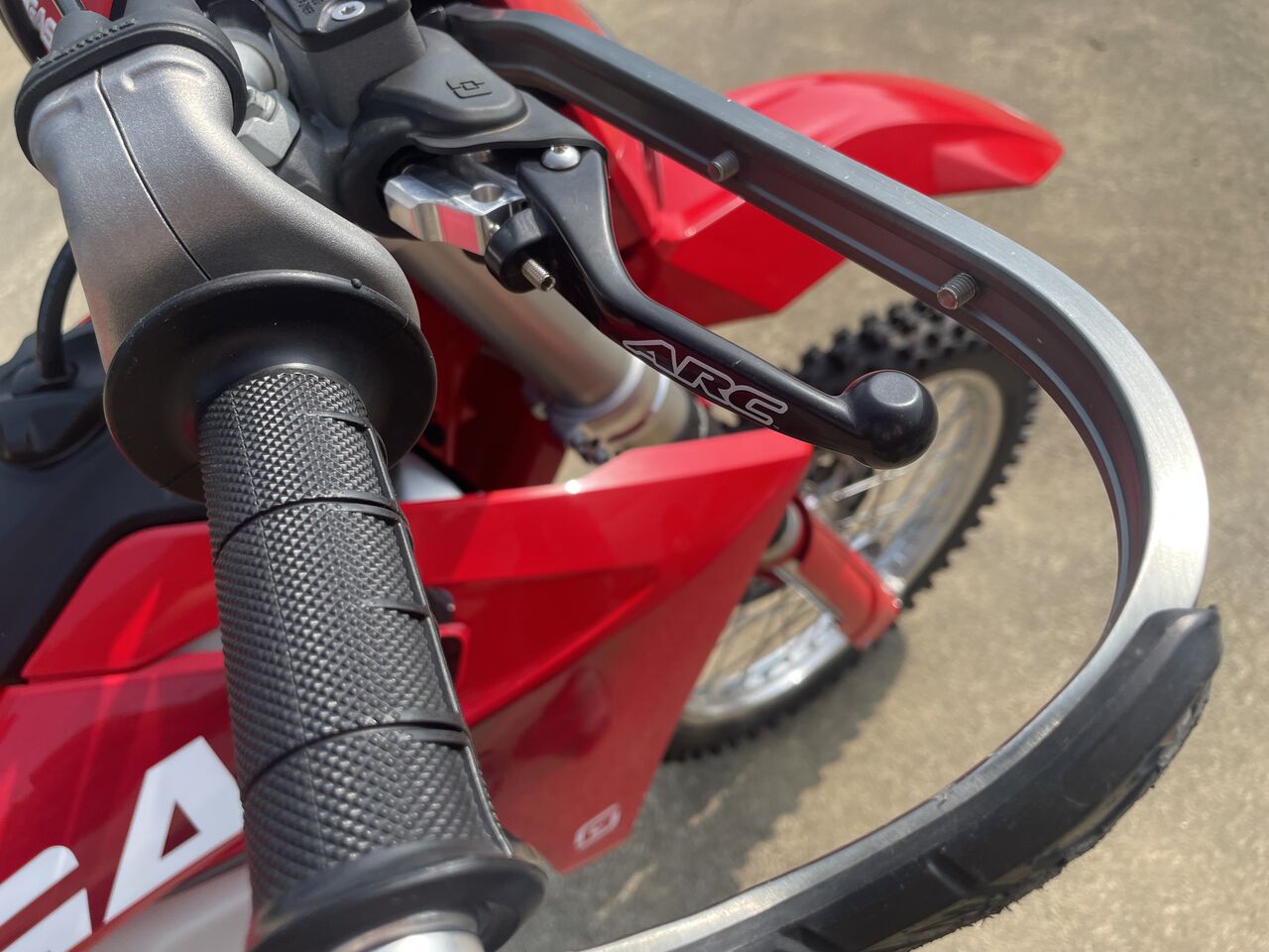 しかし、実際にバイク屋さんの物が届いてみると、「案外格好いいもんだな」と感じました。昔の2010年モデルのCRF250Rを見た時の様な見慣れた感、Betaの赤よりも深く鮮やかな真紅。これはこれでアリかな、と感じました。ライトカウルがいまいちモッサイですが、これはデカール貼ると見た目が変わるとか。ライトはLEDですが、日中でも眩しそうなので、奮発してカーボンのカバーに変える事にしました。なお今回、外装の面積が広いので、久々にオリジナルでデカールを作る事にしています。