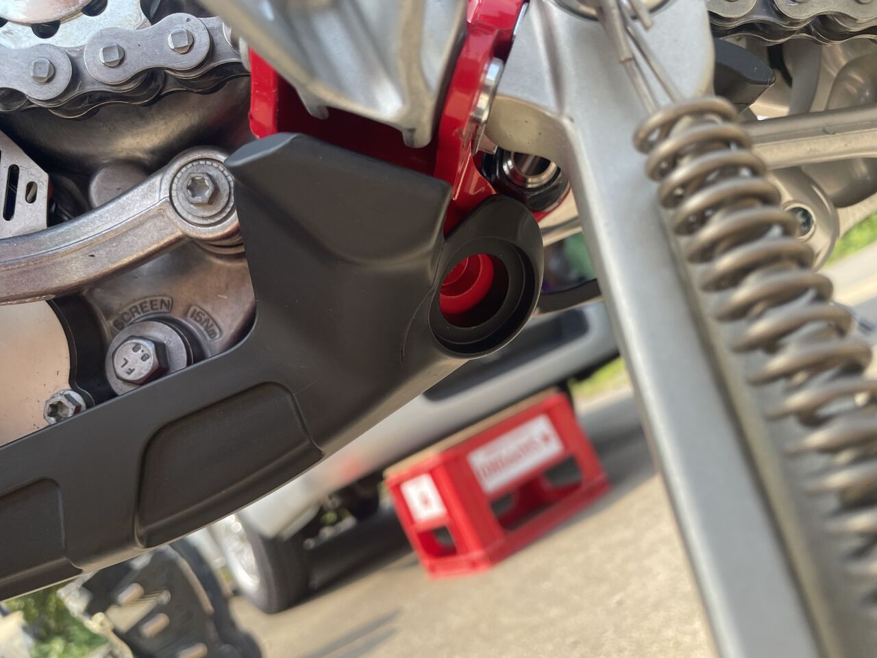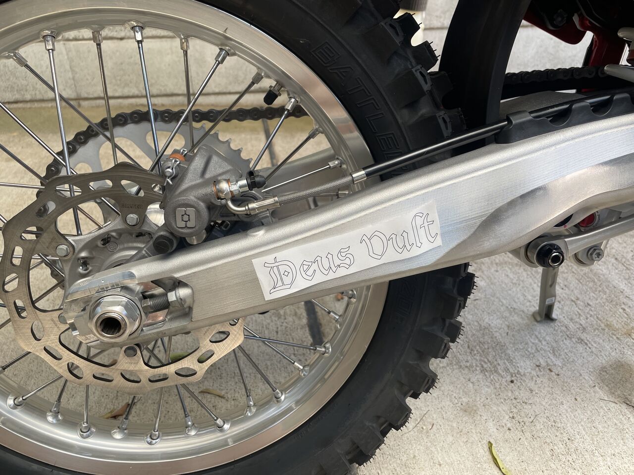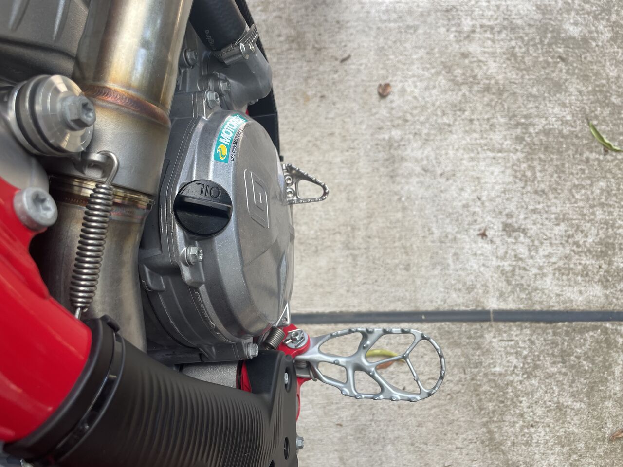 同じく、岩ゴロゴロのとこに行かないという理由で、クラッチやイグニッション、ウォータポンプ、スイングアームのカバーも今回はオミットしました。Betaはその辺りが塗装だったのでカバーしときたかったのですが、滅多に外さないカバーの内側は、泥が残ったままになって、かえって汚れてしまいます。GASGASは塗装なしの無垢ですので、何もつけない事にしました。