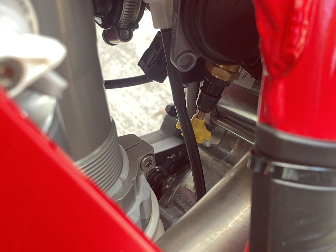 今回のバイクは、昔乗ってたCRFと同様に、フロントフォークのエア抜きをする必要があるので、ZETAのフォークトップブリーダーを付ける事に。昔もZETAのを付けてましたし。ところが、形が変わったせいか、ねじ込むだけなのに結構難儀しました。というのも、工具をかけれる部分がないからです。後で聞いた話しでは、モーションプロの方が良いそうです。だったら、そっちの方が見た目が良いので、がっかりしました。