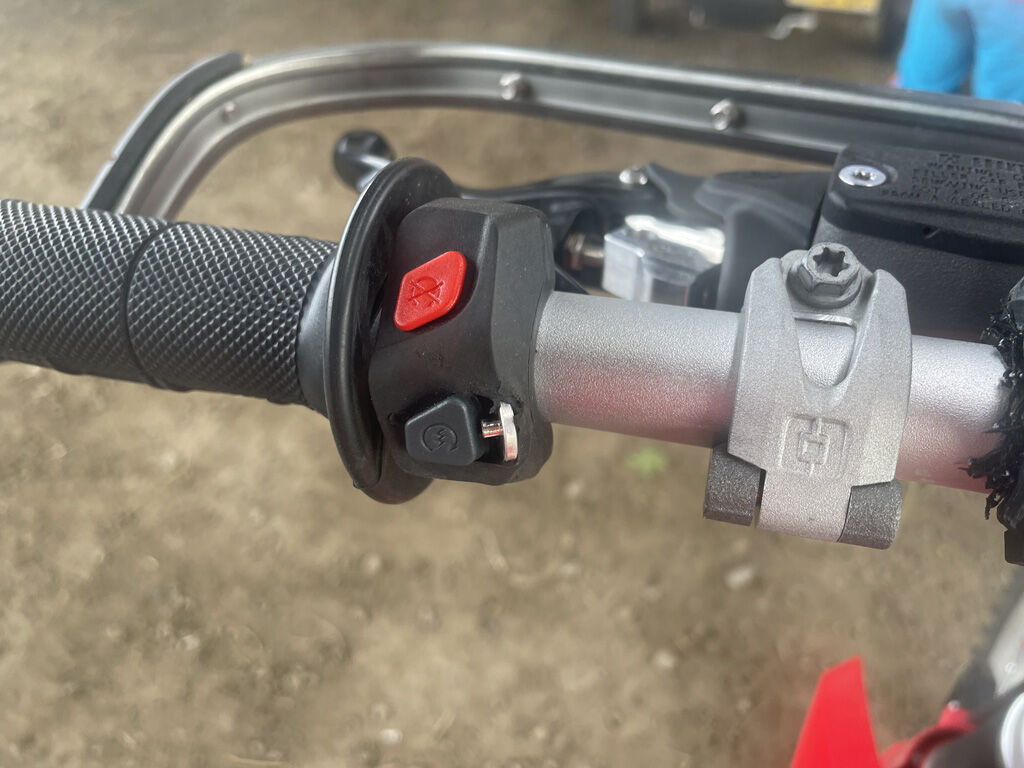 とりあえず、先にスイッチを修理してもらいました。コンビスイッチはセルが生きてるのでそのまま流用し、セルはKTM純正のスイッチを付けて貰いました。つまり、セルとキルのスイッチが別個になった訳です。となれば、キルスイッチは右側に移しても良い様なものです。